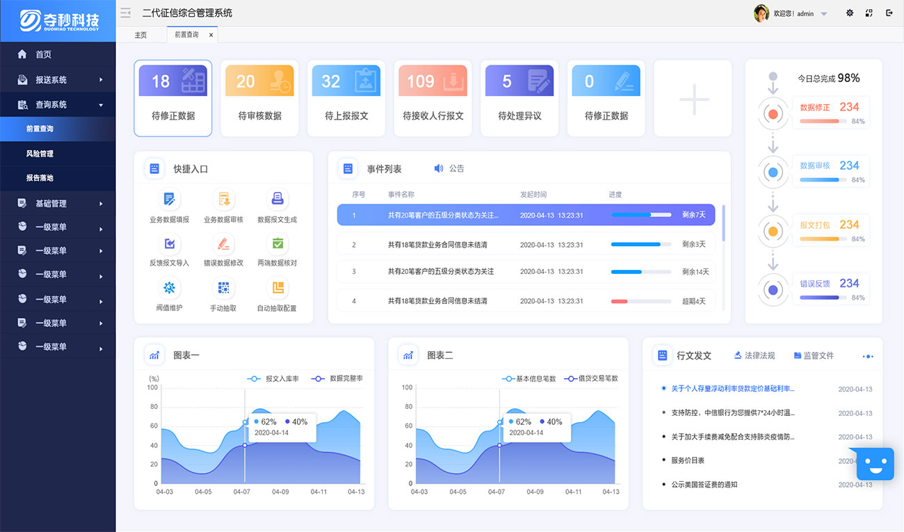 河北奪秒科技有限公司成立于2011年,注冊資金1200萬,是專注于金融信息化及軟硬件程序設(shè)計與開發(fā)的高科技軟件企業(yè)。專注于“監(jiān)管報送”,專業(yè)的事由專業(yè)的團隊來做!2020年1月17日至2020年5月3日期間(簡稱切換期),將一代征信系統(tǒng)所有業(yè)務(wù)分步切換至二代系統(tǒng)運行。2020年5月,二代征信系統(tǒng)全面接替一代征信系統(tǒng)。