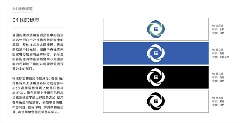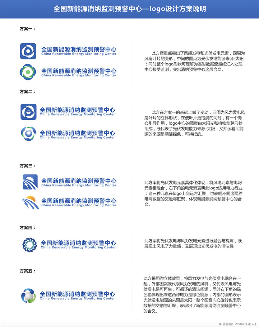 制約新能源消納的關(guān)鍵因素,為新能源的優(yōu)化布局和行業(yè)政策制定提供參考,促進(jìn)我國(guó)新能源高質(zhì)量發(fā)展。 藍(lán)藍(lán)設(shè)計(jì)對(duì)全國(guó)新能源消納監(jiān)測(cè)預(yù)警中心的工作范圍做了調(diào)查研究,首先理解業(yè)務(wù)和核心競(jìng)爭(zhēng)力,之后調(diào)查了行業(yè)相關(guān)品牌標(biāo)志設(shè)計(jì),聽取了大家的期望,之后設(shè)計(jì)出多版logo供選擇。標(biāo)志設(shè)計(jì)確定后進(jìn)行了VI和宣傳冊(cè)的設(shè)計(jì)。