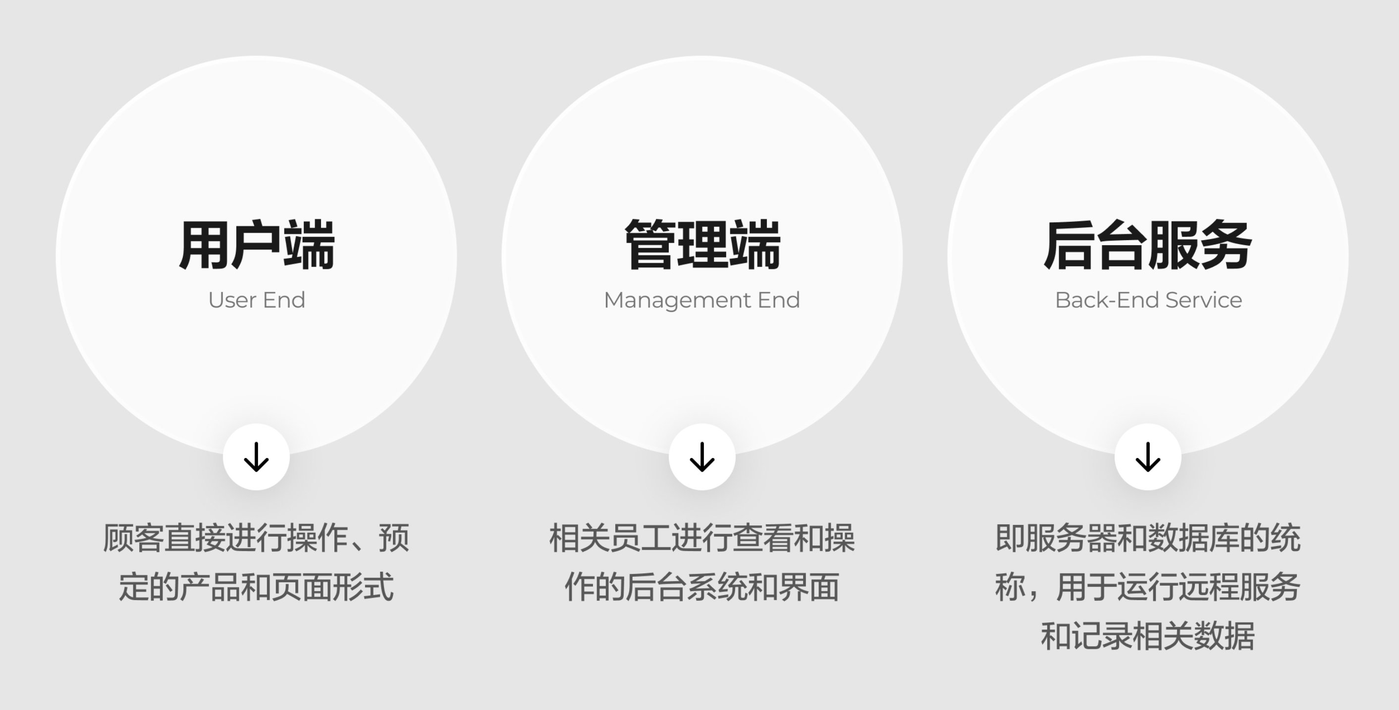 根據(jù)上面對(duì)不同端的分析和構(gòu)想,就可以創(chuàng)建產(chǎn)品的 —— 功能架構(gòu)圖,比如下面這個(gè)極簡的版本: