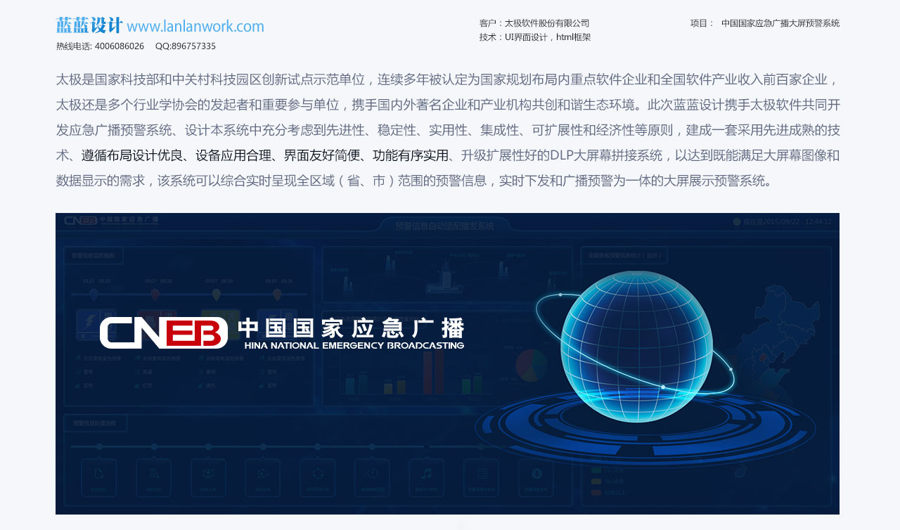 北京藍藍設計作品:    太極集團承接的中央臺應急指揮中心大屏