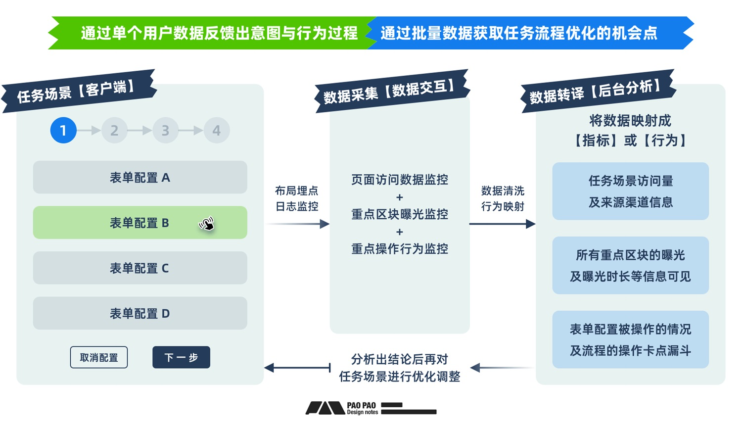 用戶行為路徑是一種數字化的旅行地圖,相比較傳統服務的旅行地圖,場景會更純粹、意圖更準確、數據采集更便捷,主要作用有以下幾點;