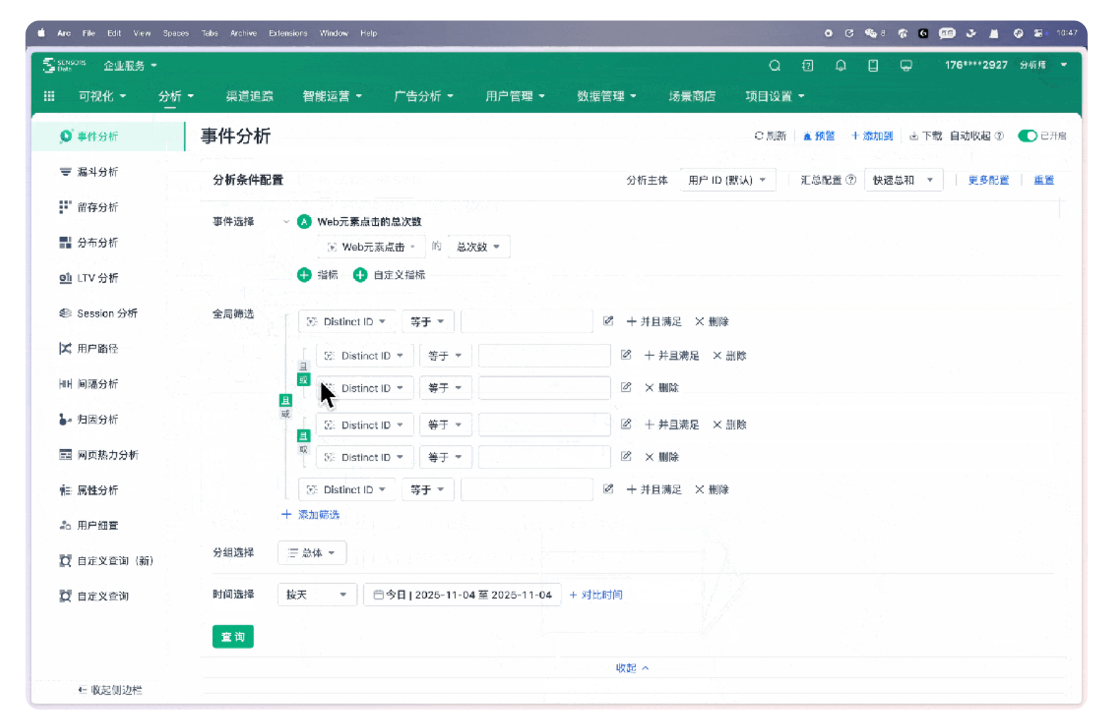 或就是這些條件滿足任意一個就能出結(jié)果,比如還是電商數(shù)據(jù),需要尋找對產(chǎn)品有興趣的潛在客戶,就需要篩選「近 90 天內(nèi)有過人工咨詢記錄、近 30 天內(nèi)訪問產(chǎn)品詳情頁≥6 次、近 180 天內(nèi)提交過試用申請」,三個條件滿足任意一個,這樣就能涵蓋更為全面。