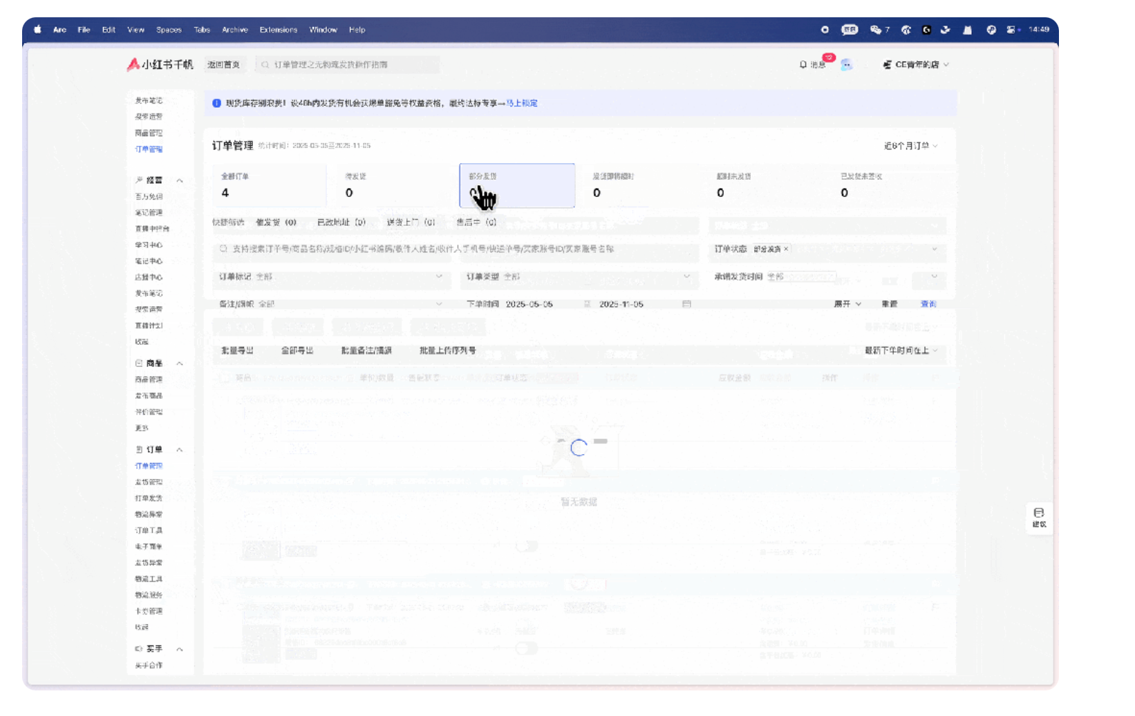 比如我想外露的內(nèi)容是各種狀態(tài),我就可以將其放在頂部,進(jìn)行指標(biāo)圖+篩選功能的雜糅,像在小紅書千帆系統(tǒng)當(dāng)中,對于訂單的多種狀態(tài),就會使用這一技巧,進(jìn)行呈現(xiàn)。