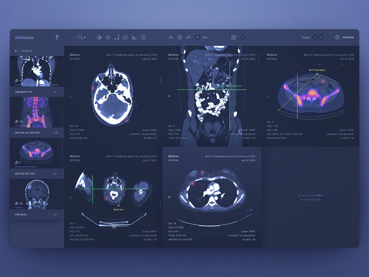 • 設計邏輯:聚焦醫療專業場景(如影像診斷、醫護決策),通過多視圖對比、精準標注工具、模塊化數據面板,滿足醫護人員對醫療信息的深度分析與快速決策需求,突出專業、高效的使用體驗。