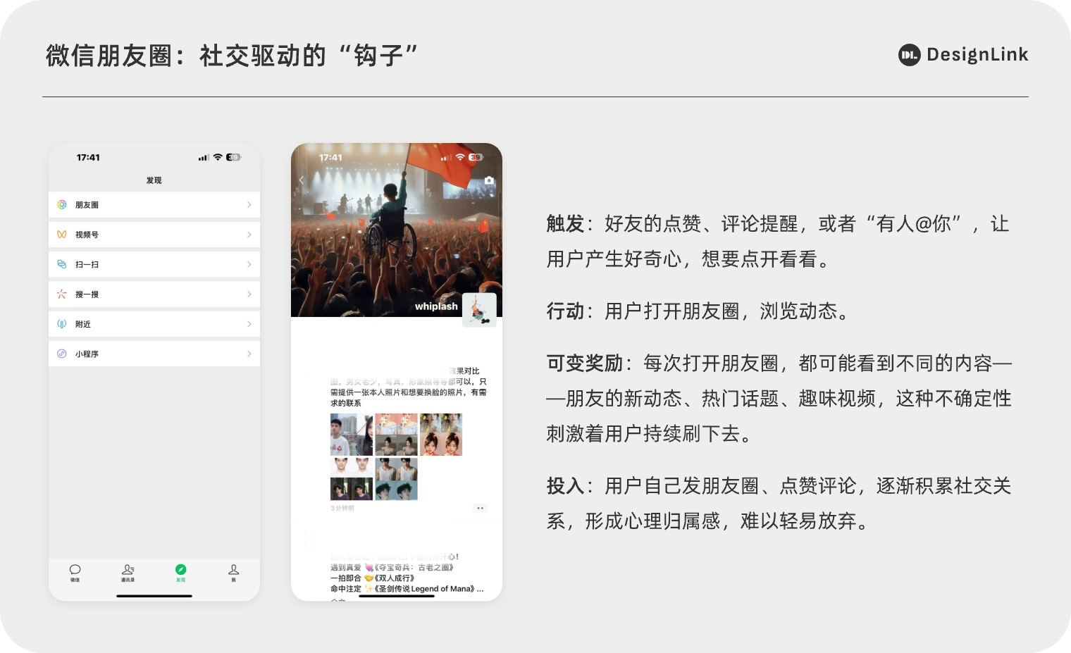首頁首位:確保用戶進入應用后立即接觸社交動態,增強親近感