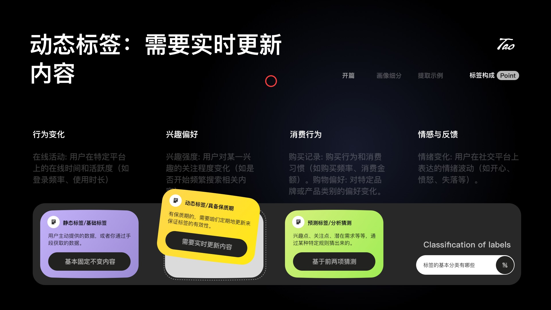 通過分析用戶的行為、興趣和需求,幫助企業精準了解用戶到底是誰,喜歡什么,甚至還可能預測他們下一步會做什么。說白了,就是讓企業從“蒙著眼睛射箭”變成“開著瞄準鏡打靶”。請看下面的圖形化總結,方便大家更直觀理解標簽模型~