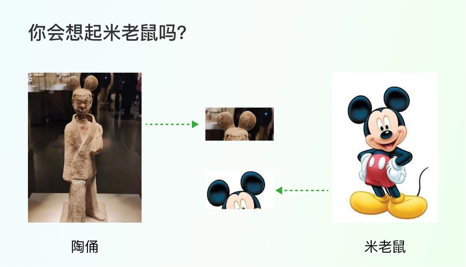 這就是心智模型,你對頭頂的大圓形的心智是“米老鼠”,所以一旦你看到類似的形狀,米老鼠的形象就會浮現出來,這個發髻的形狀和你心里對米老鼠的形象產生了匹配。