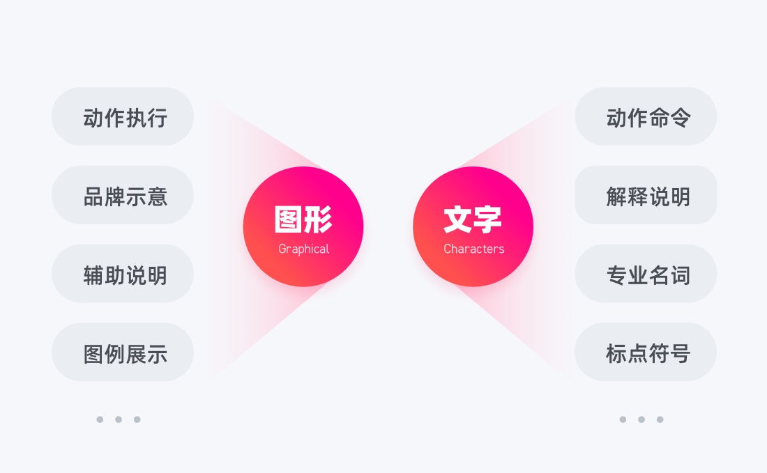 在界面中以圖形化的形式表達動作、品牌、說明等信息,讓用戶能直觀的感知到信息的含義,圖形的類型有:動作執行類操作、品牌示意、輔助說明、圖例展示4大類型;