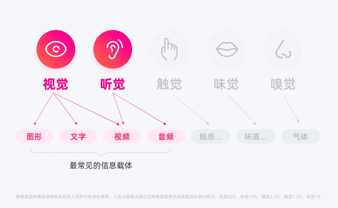 如何提升信息識別體驗在產品界面中信息交互過程中,信息最為常見的四種載體:圖形、文字、音頻、視頻(全景圖、gif圖、動效圖在大類暫時可算圖形,不作細分),而圖、文占據了絕對的比重,所以需要重點關注圖、文信息的識別體驗。