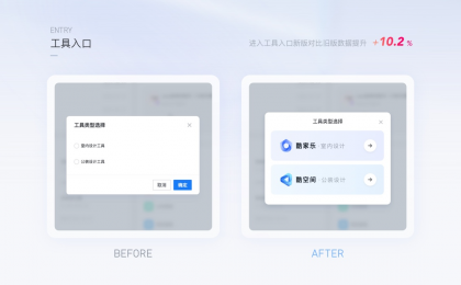 案例1:工具入口的圖形化表達用戶從工作臺進入到設計工具,純文本的表達用戶很容易產生疑惑,在不改變業務邏輯的情況下,進行圖形化表達。