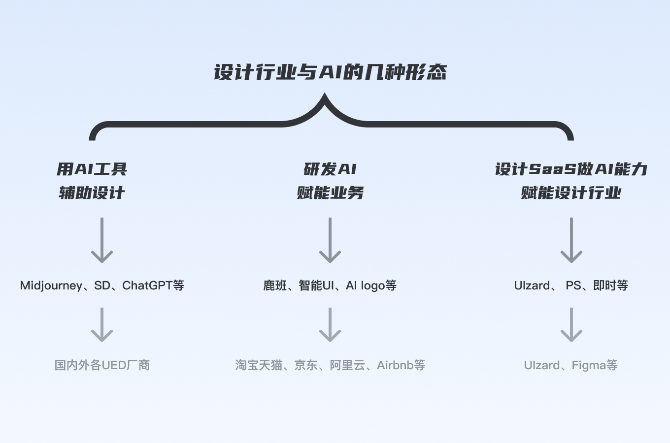 這里不涉及設(shè)計(jì)作為UI、UX接相關(guān)AI業(yè)務(wù)需求的場(chǎng)景,目前主要的關(guān)系是用AI工具輔助設(shè)計(jì),設(shè)計(jì)驅(qū)動(dòng)研發(fā)AI賦能業(yè)務(wù)在部分大廠有,非常稀缺,設(shè)計(jì)SaaS賦能行業(yè)總體來講玩家數(shù)量有限,這里不再贅述。