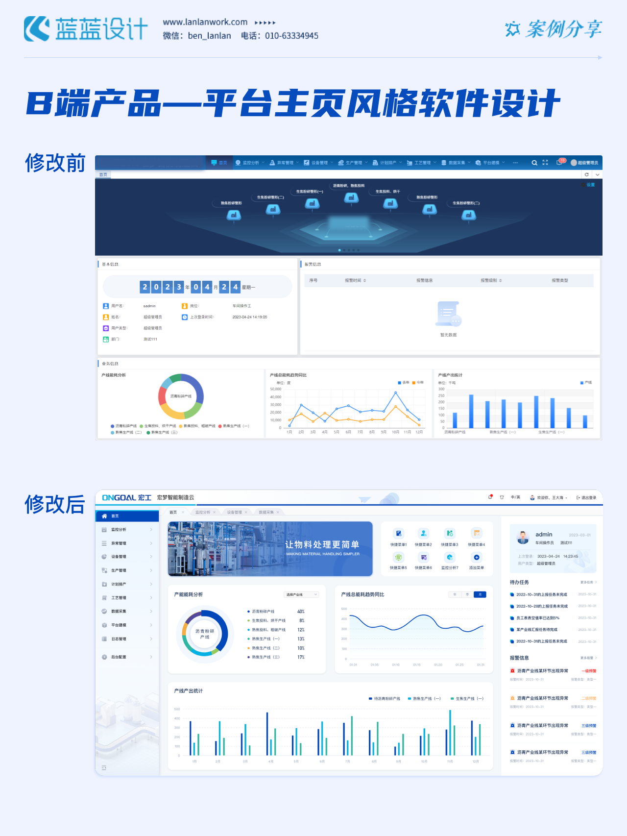 hello,大家好!今天藍(lán)藍(lán)要介紹的是我們近期的作品,兩種不同風(fēng)格的B端產(chǎn)品平臺首頁,一起來欣賞吧!
