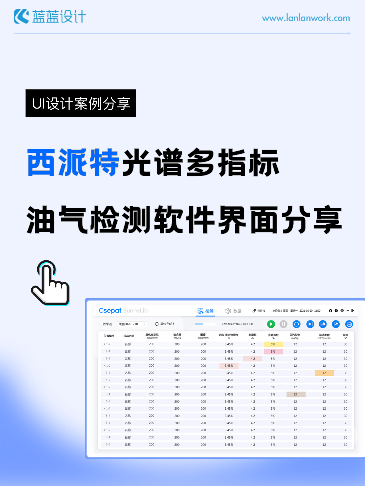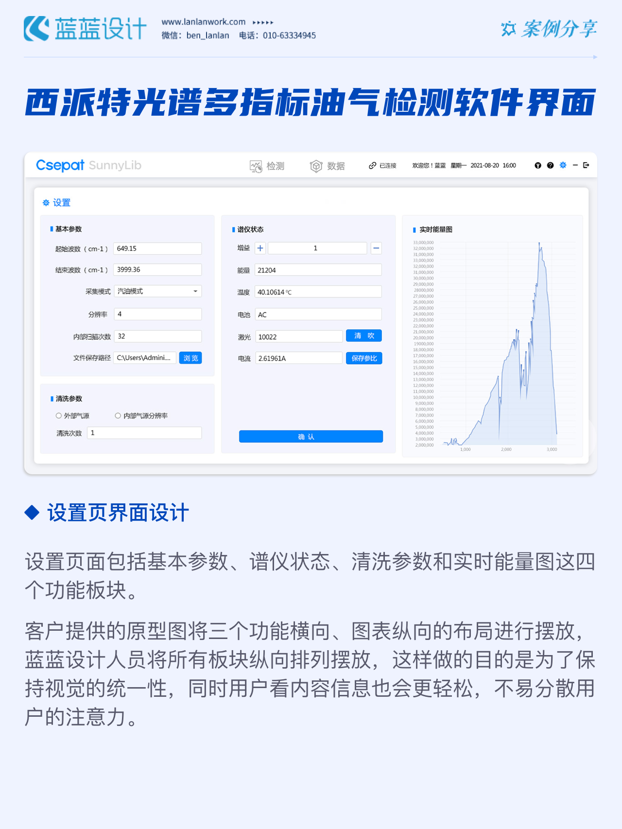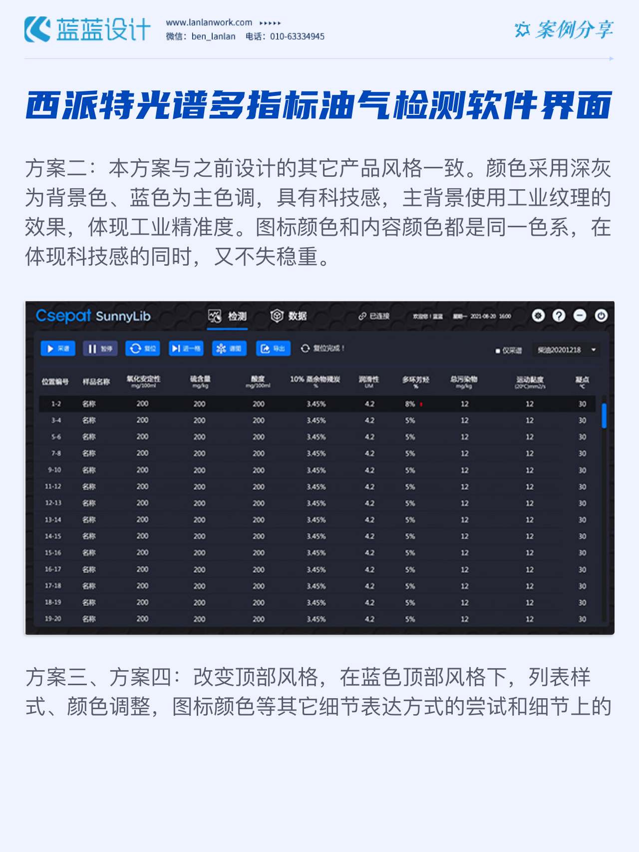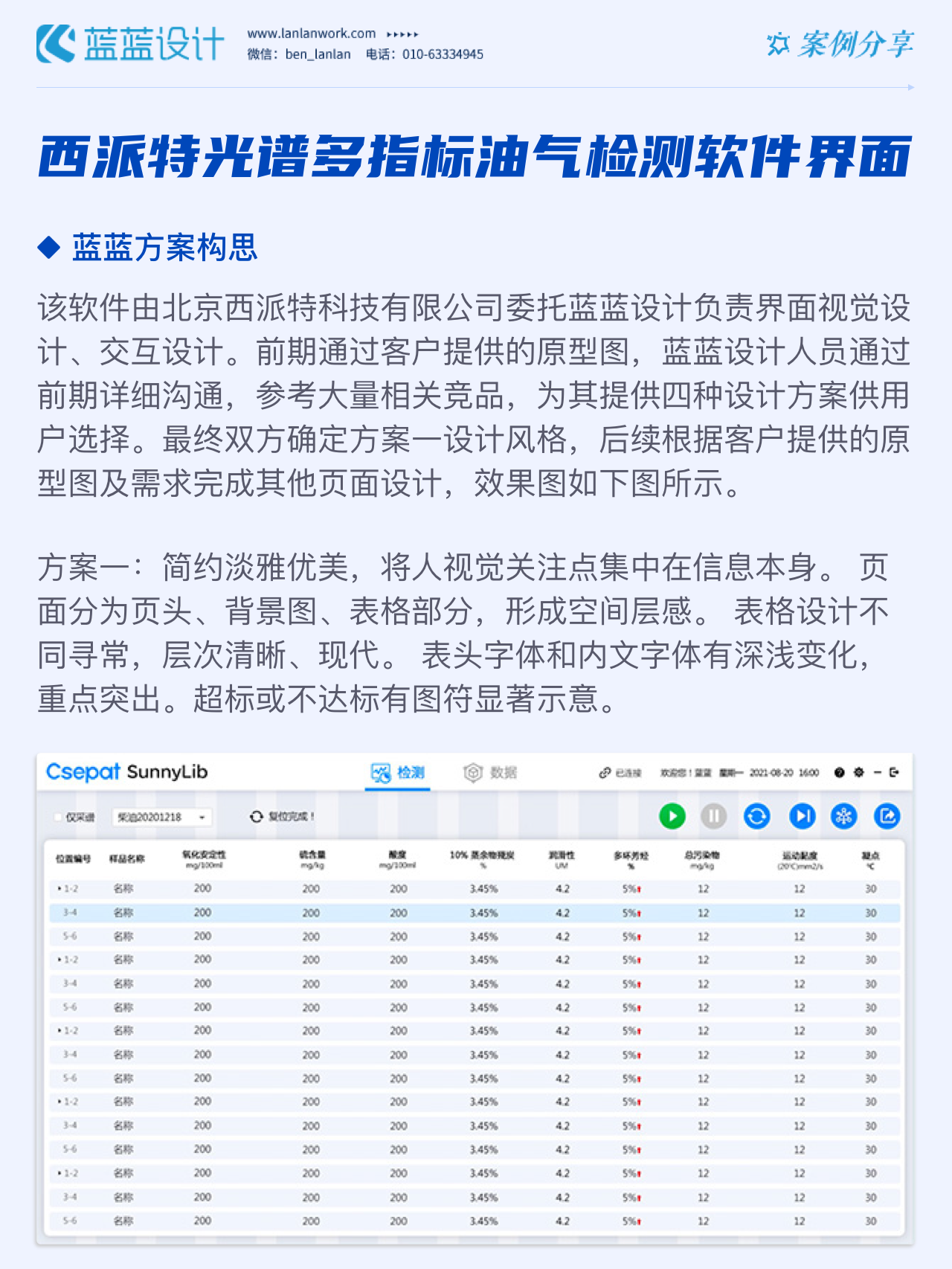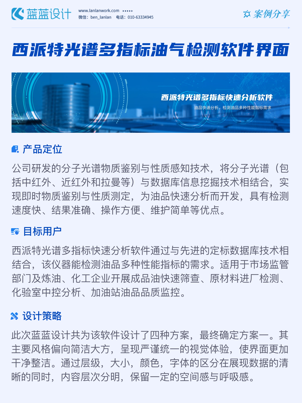 該軟件由北京西派特科技有限公司委托藍藍設計負責界面視覺設計、交互設計。藍藍設計人員通過前期詳細溝通,參考大量相關競品,為其提供四種方案視覺設計。最終雙方確定方案一設計風格,后續根據客戶提供的原型圖及需求完成其他頁面設計。