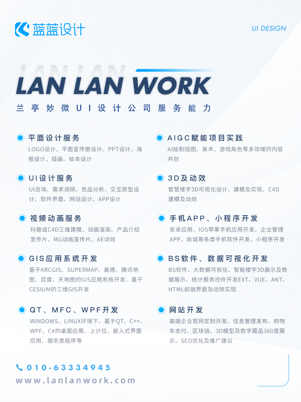 藍藍設計(www.dzxscac.cn )是一家專注而深入的界面設計公司,為期望卓越的國內外企業提供卓越的大數據可視化界面設計、B端界面設計、桌面端界面設計、APP界面設計、圖標定制、用戶體驗設計、交互設計、UI咨詢、高端網站設計、平面設計,以及相關的軟件開發服務,咨詢電話:01063334945。