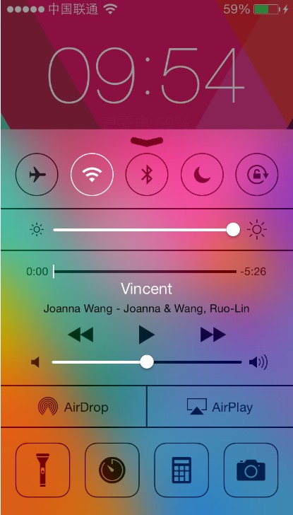 之所以說這是 iOS 7 上最美好的改進,因為無論在鎖屏狀態(tài)下,抑或在應用當中,只要指尖從屏幕底部向上滑動,即可調(diào)出 Control Center。