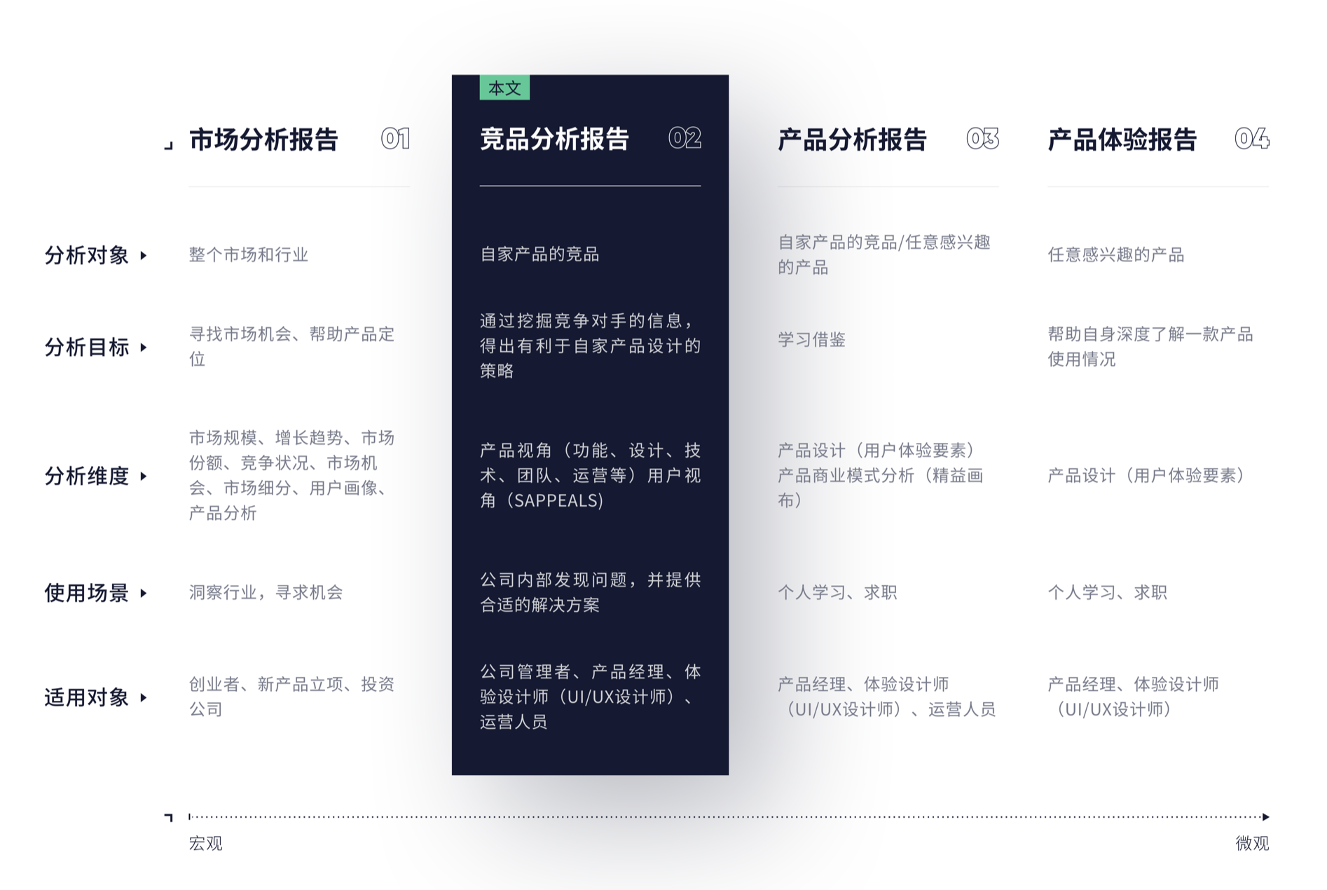 為避免將競品分析報告和產品體驗報告混淆,先了解常見幾類報告的區別: