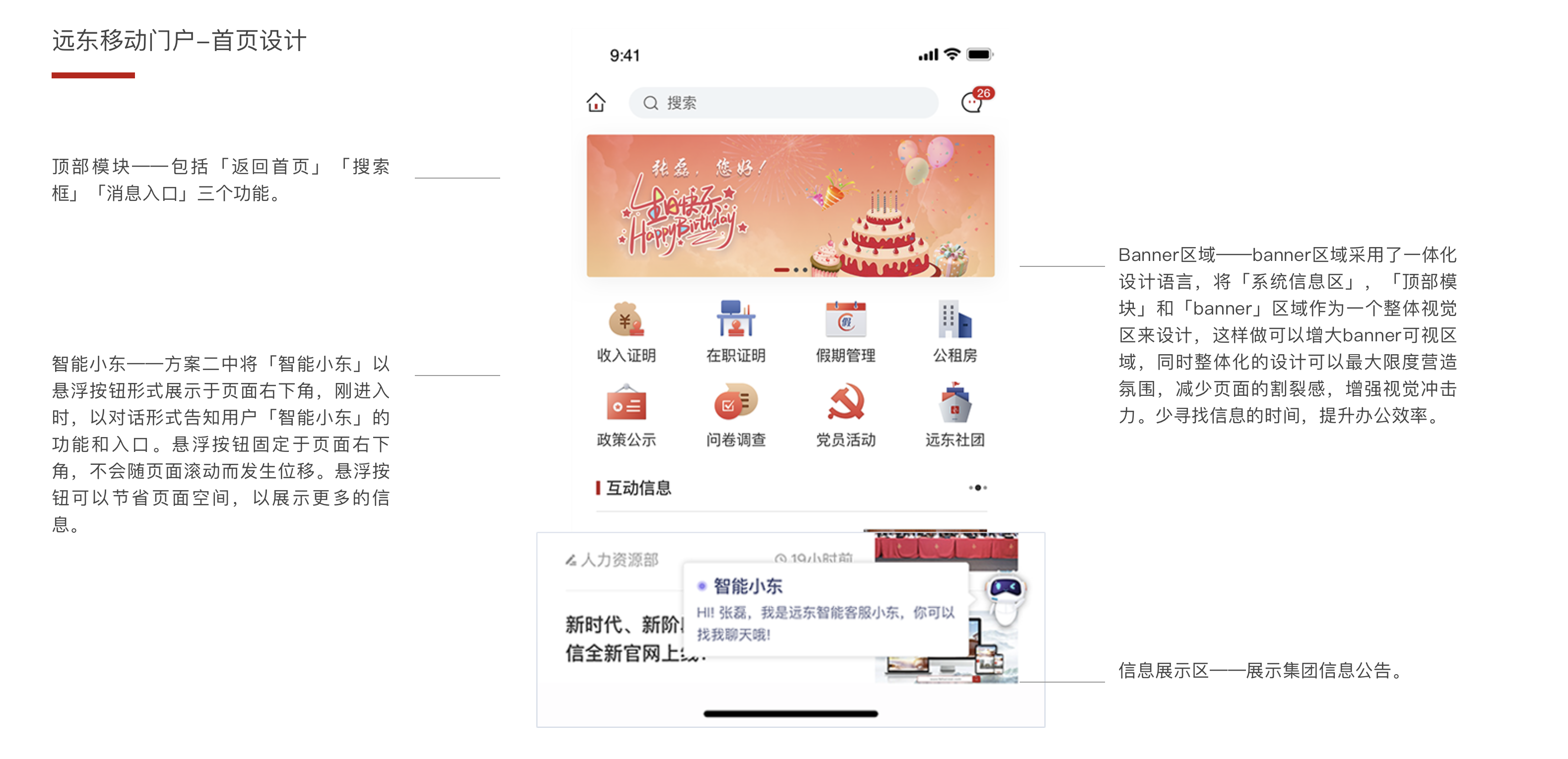 遠東移動門戶APP-人力資源模塊包含收入證明、在職證明、假期管理、公租房、政策公示等,同時將互動信息在集團公告區互動展示,實現人員管理、交流協同化和一體化。使集團工作更便捷、高效,組織管理更透明化,合理化。