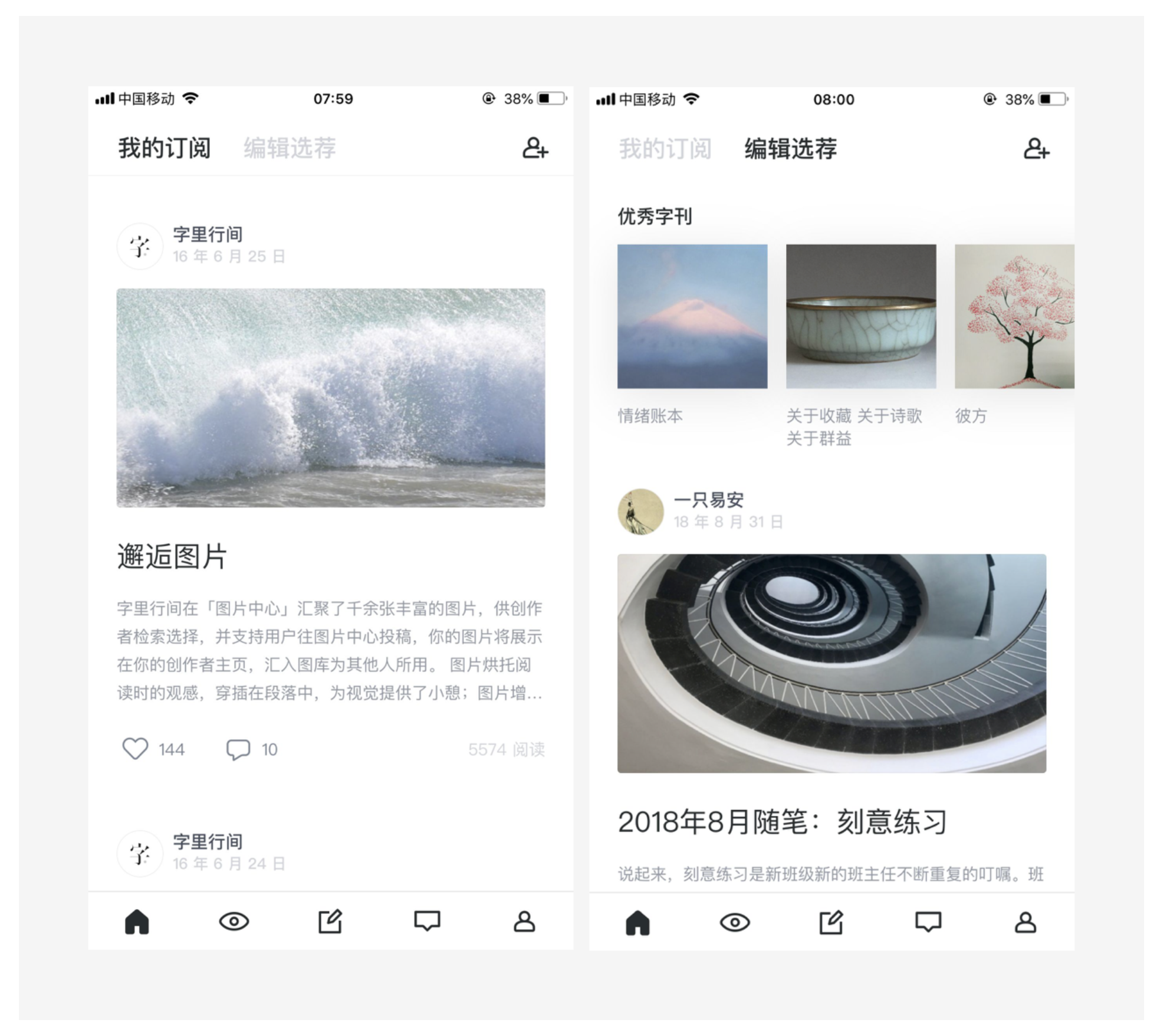 - 簡約:簡潔界面減少用戶錯(cuò)誤操作和認(rèn)知成本,如字里行間 APP 設(shè)計(jì)簡潔,結(jié)構(gòu)清晰。