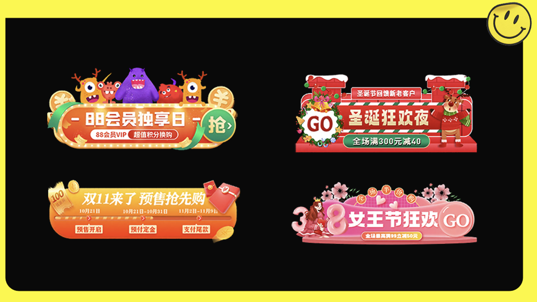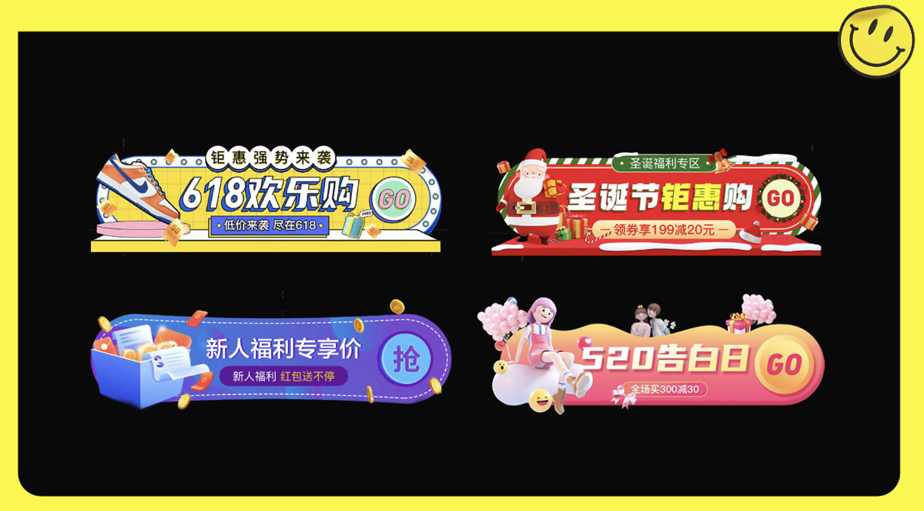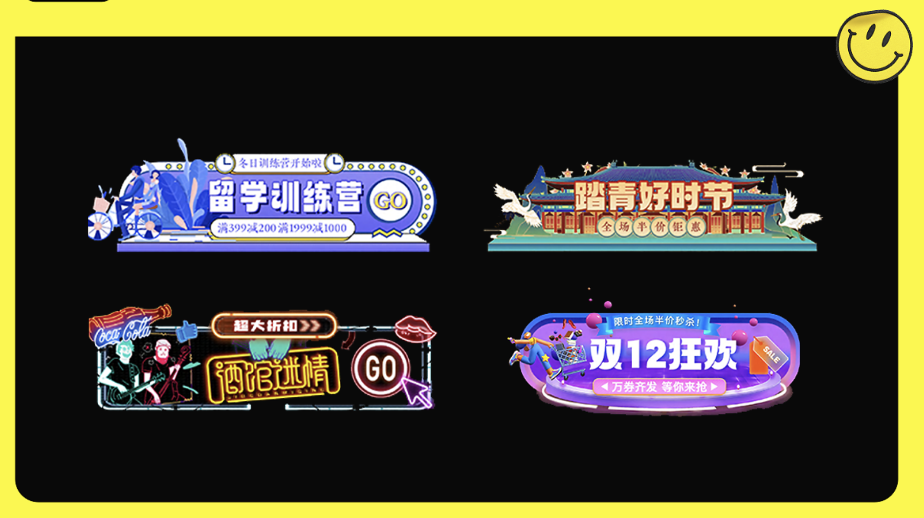 展示的 banner 設(shè)計(jì)涉及多種場(chǎng)景,包括: