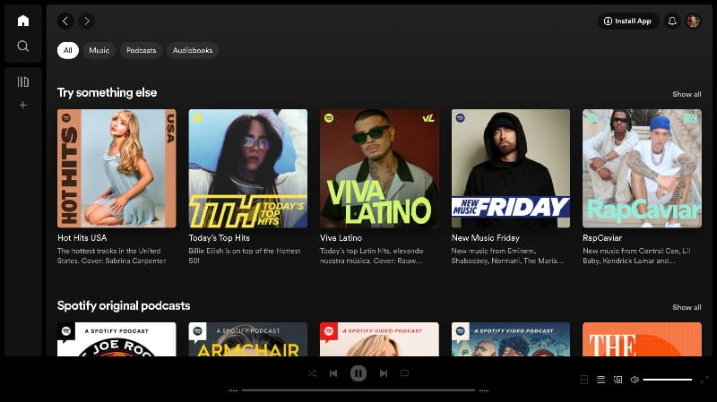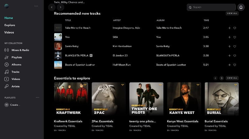 頂部導(dǎo)航欄:固定在頂部,放置核心功能入口(Home、Explore、Library、Search)。