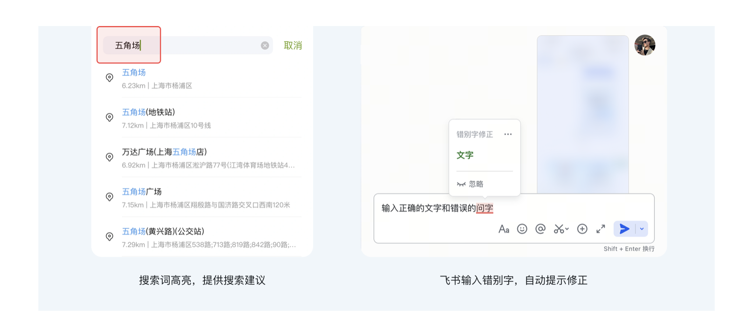 - 飛書(shū)輸入文字時(shí),打錯(cuò) “公司” 為 “公同”,會(huì)自動(dòng)彈出 “是否修正為‘公司’” 的提示;