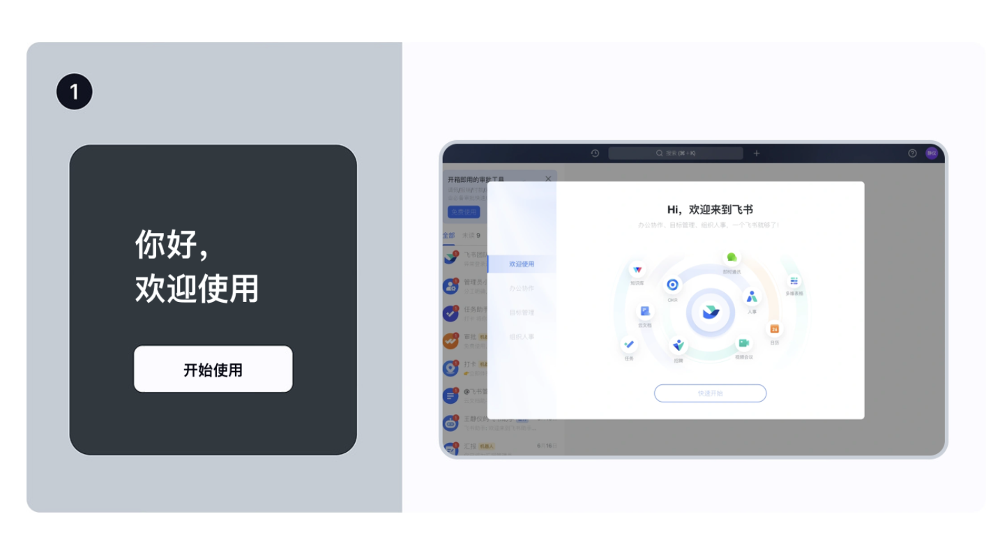 - 例子:飛書的歡迎頁會直接告訴用戶 “這里有辦公協(xié)作、云文檔、審批等功能”,既點明核心價值,又定下專業(yè)的辦公氛圍;