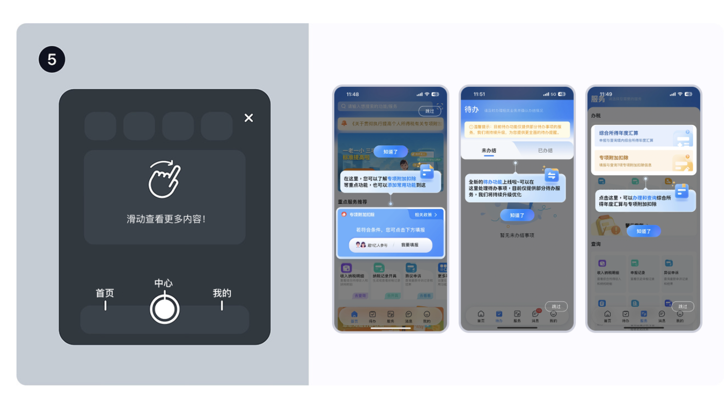 - 例子:稅務(wù) APP 新增 “待辦功能” 后,會在 “待辦” 入口旁彈氣泡,告訴用戶 “這里能處理未辦結(jié)事項”,用戶點 “知道了” 就關(guān)閉,不影響正常使用;