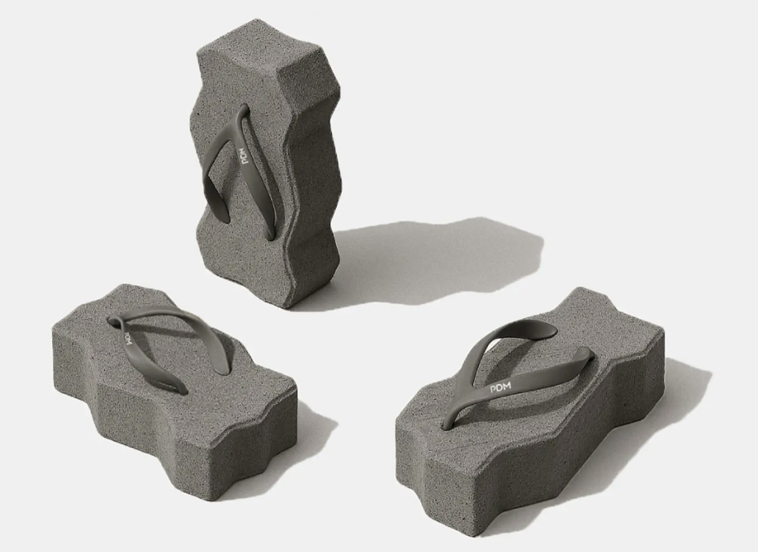 設計品牌 PDM 推出一款極具巧思的人字拖,其設計靈感直接源自泰國街頭常見的鋸齒狀混凝土鋪路石。這款產品打破了人們對 “穿戴設計” 的固有認知,將被忽視的日常地面元素,轉化為有趣且實用的時尚單品。