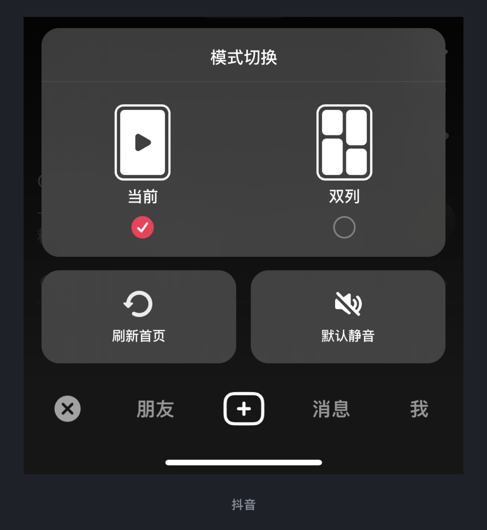 手勢交互的核心是 “用最自然的動作實現最常用的功能”,而雙觸發手勢則讓單一入口承載更多可能性。抖音的底部 “首頁” 標簽欄就藏著這樣的巧思:單擊即可快速刷新內容,長按則彈出功能面板,支持單列 / 雙列布局切換、默認靜音設置等操作。