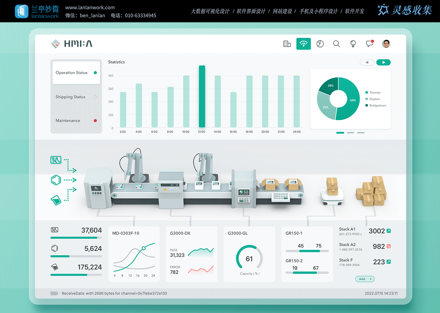 當工業(yè)界面還困在 “機械感” 與 “數(shù)據(jù)堆砌” 的刻板印象中時,蘭亭妙微的 HMI:A 界面設(shè)計,用「輕量美學」與「功能溫度」重構(gòu)了工業(yè)可視化的表達邏輯。這不僅是一個數(shù)據(jù)監(jiān)控面板,更是一場 “讓工業(yè)系統(tǒng)會說話” 的設(shè)計實踐。