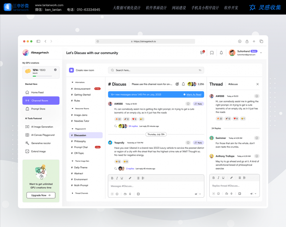 - 場景化功能聯(lián)動:左側(cè)導(dǎo)航欄集成 AI 工具、需求落地入口等,用戶在討論中產(chǎn)生的需求可直接跳轉(zhuǎn)至工具頁面,實現(xiàn) “討論 - 落地” 無縫銜接,減少跨平臺切換成本。