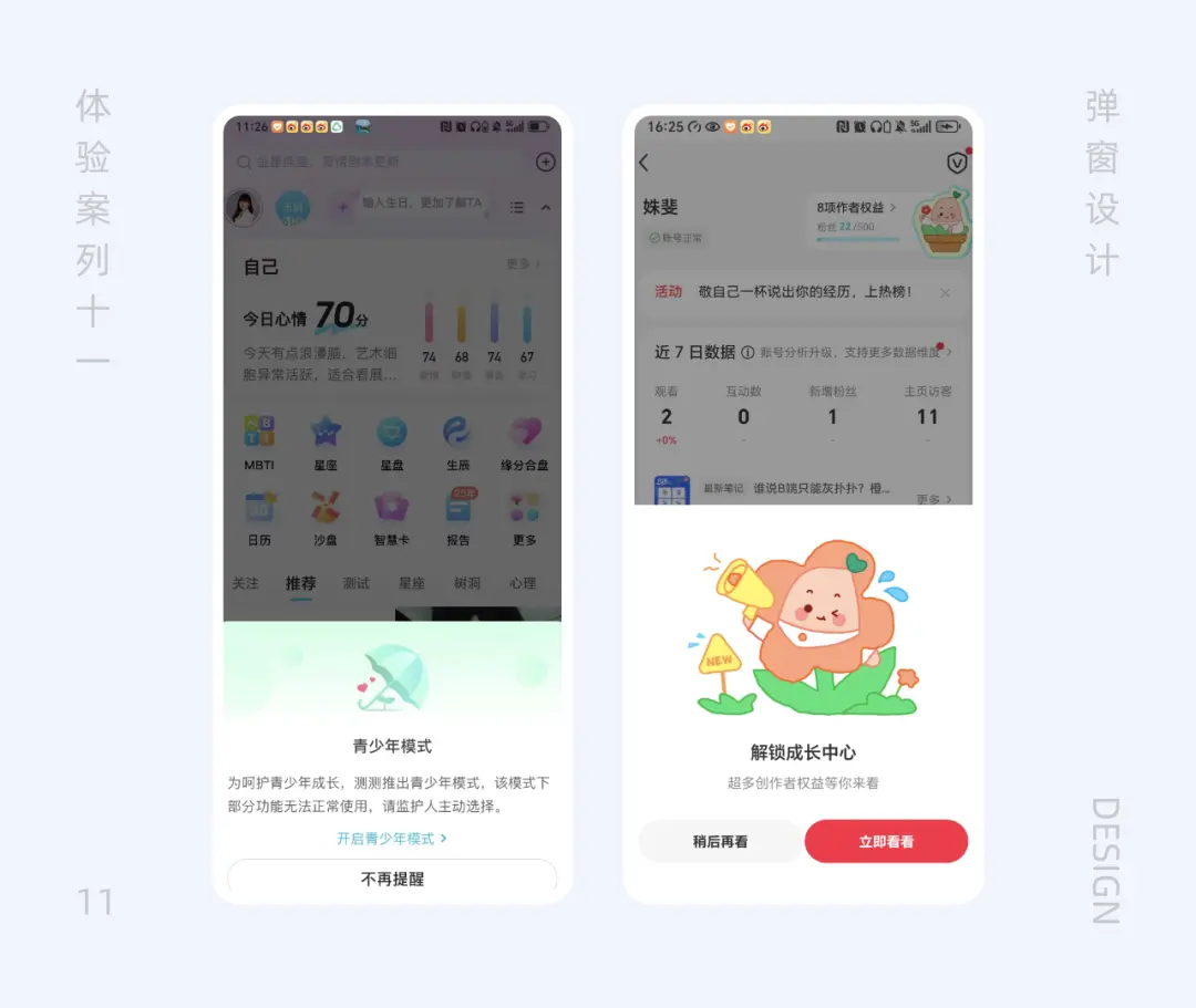 將產(chǎn)品專屬 IP 形象與方形卡片融合,是創(chuàng)意枯竭時(shí)的優(yōu)質(zhì)普適性方案。借助 IP 的視覺辨識(shí)度,讓彈窗兼具美觀度與趣味性,強(qiáng)化產(chǎn)品記憶點(diǎn)。