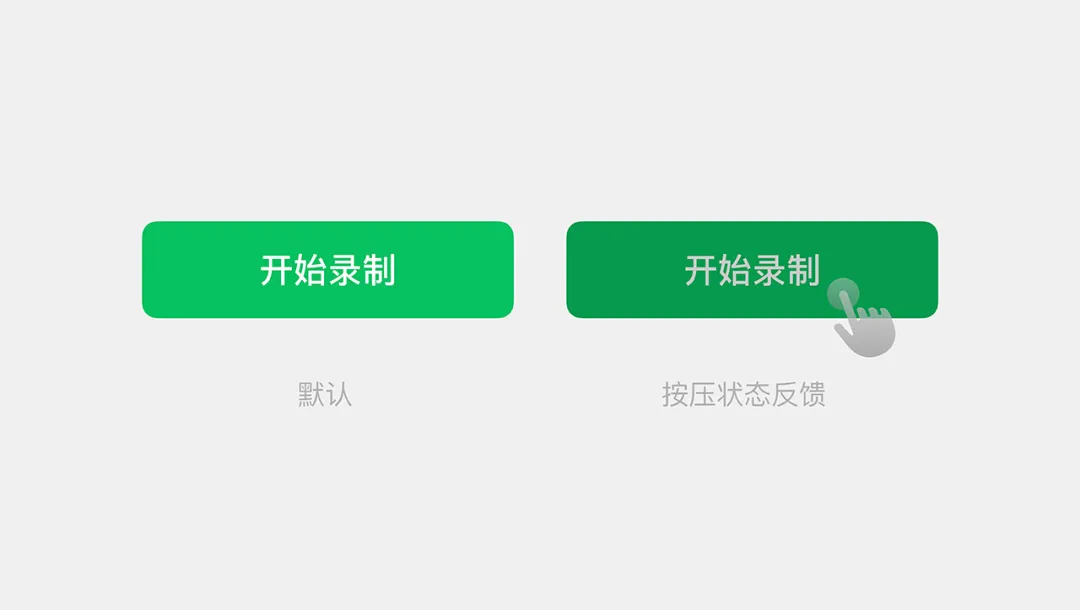 ▲當(dāng)用戶(hù)輕觸“開(kāi)始錄制”按鈕時(shí),按鈕顏色加深、形態(tài)變化,直觀告知用戶(hù)操作已生效。