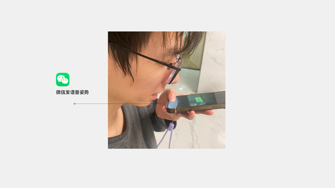 通過(guò)系統(tǒng)性分析,我們意識(shí)到問(wèn)題的本質(zhì)在于交互模型與用戶(hù)任務(wù)目標(biāo)之間存在內(nèi)在沖突 :長(zhǎng)按動(dòng)作本身與微信發(fā)語(yǔ)音交互類(lèi)似,易引起貼近設(shè)備的心理暗示。