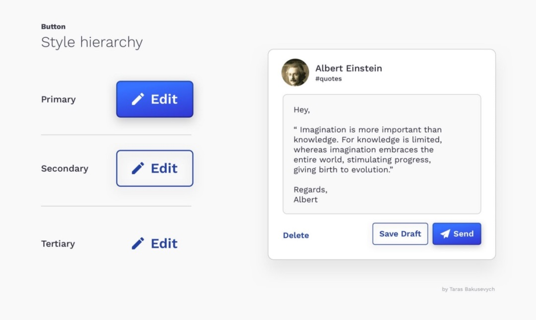 利用樣式差異構建清晰的動作層級,在多個選項中引導用戶。通常,最重要的操作使用“首要”按鈕樣式,其他操作則按重要程度遞減。