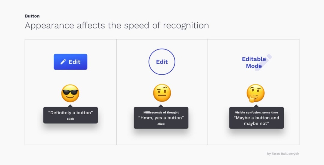 可用性專家Steve Krug曾說:“別讓我思考。”用戶早已被各類電子產品“教育”,對按鈕的外觀和功能形成了固定認知。任何與“標準”的較大偏差,都可能造成困惑。