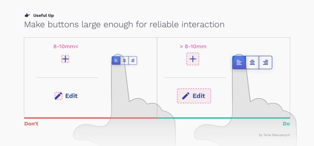 按下一個按鈕應是輕松簡單的操作。如果用戶容易誤觸相鄰元素,會帶來糟糕的負面體驗。