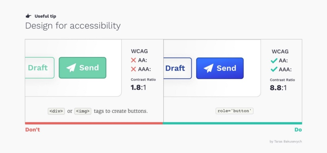 所有組件都應遵循無障礙設計原則。除了目標區域大小,字體尺寸、色彩對比度也至關重要。有許多工具可以幫助檢測組件的可訪問性表現。