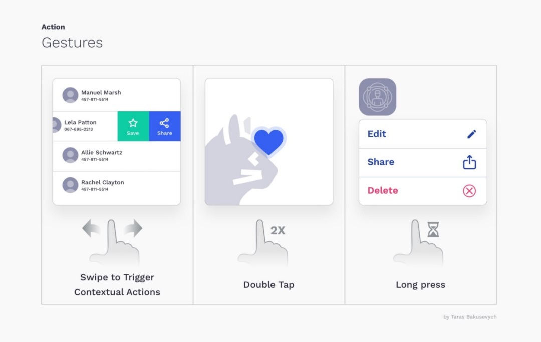 手勢(如滑動、雙擊、長按)能提供觸覺反饋并節省時間。然而,對于普通用戶而言,許多手勢并不直觀。建議將復雜手勢作為快捷操作留給高級用戶,同時為普通用戶保留明確的按鈕操作入口。