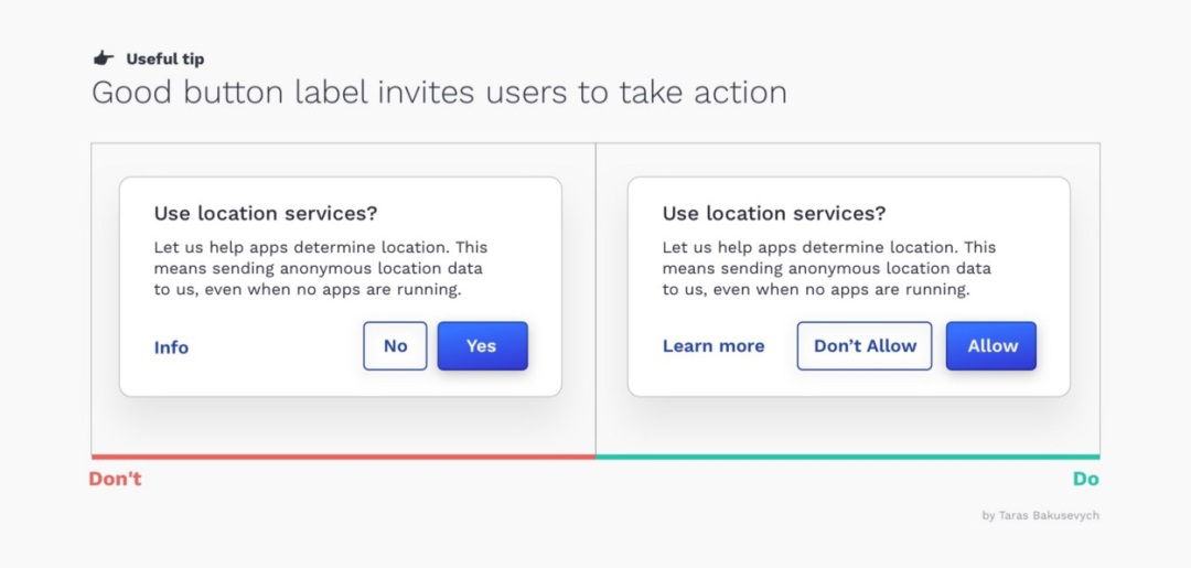按鈕傳達的文字信息與其外觀同等重要。模糊的標簽會讓用戶感到困惑甚至誤導。