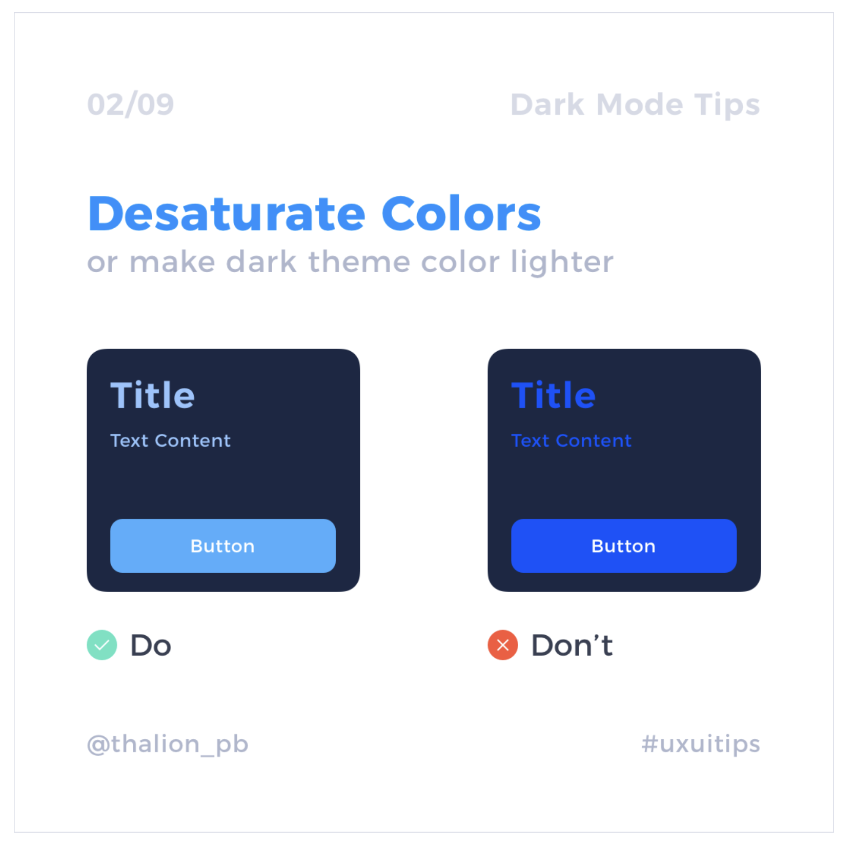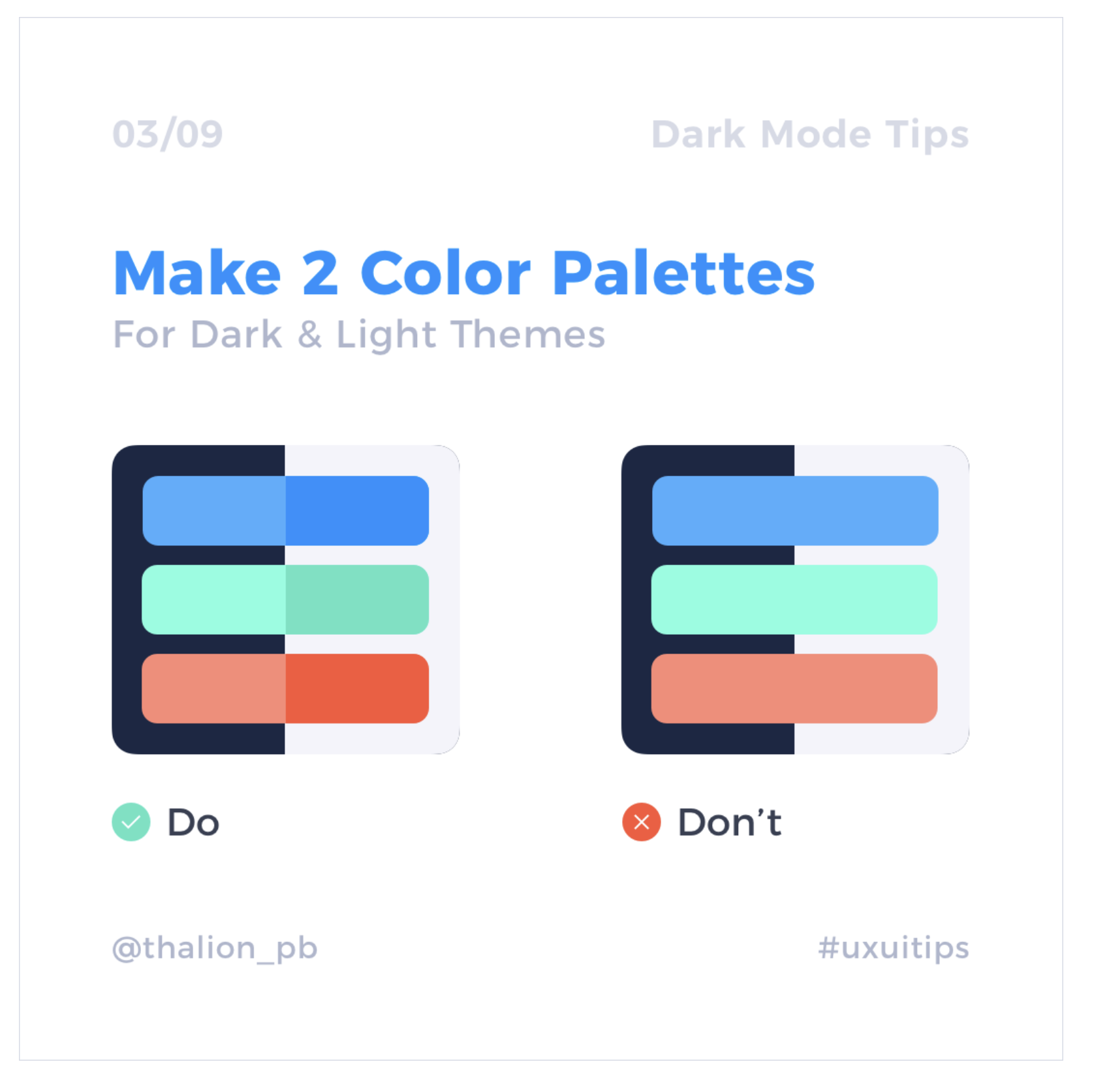 淺色模式的鮮艷色彩,直接搬到暗黑模式會違和、刺眼。