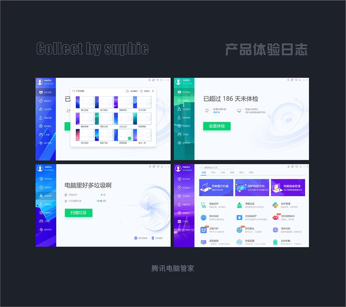 - 騰訊電腦管家內(nèi)置 12 種個性皮膚,支持一鍵換膚,滿足用戶的審美與個性化需求。