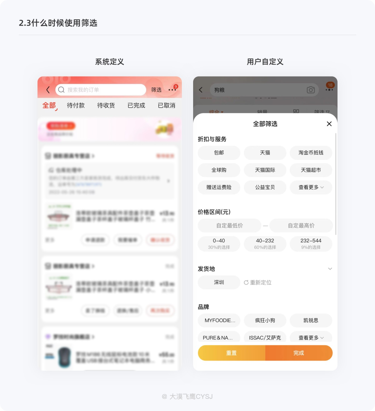 - 篩選:系統提供條件,用戶被動選擇 → 縮小范圍