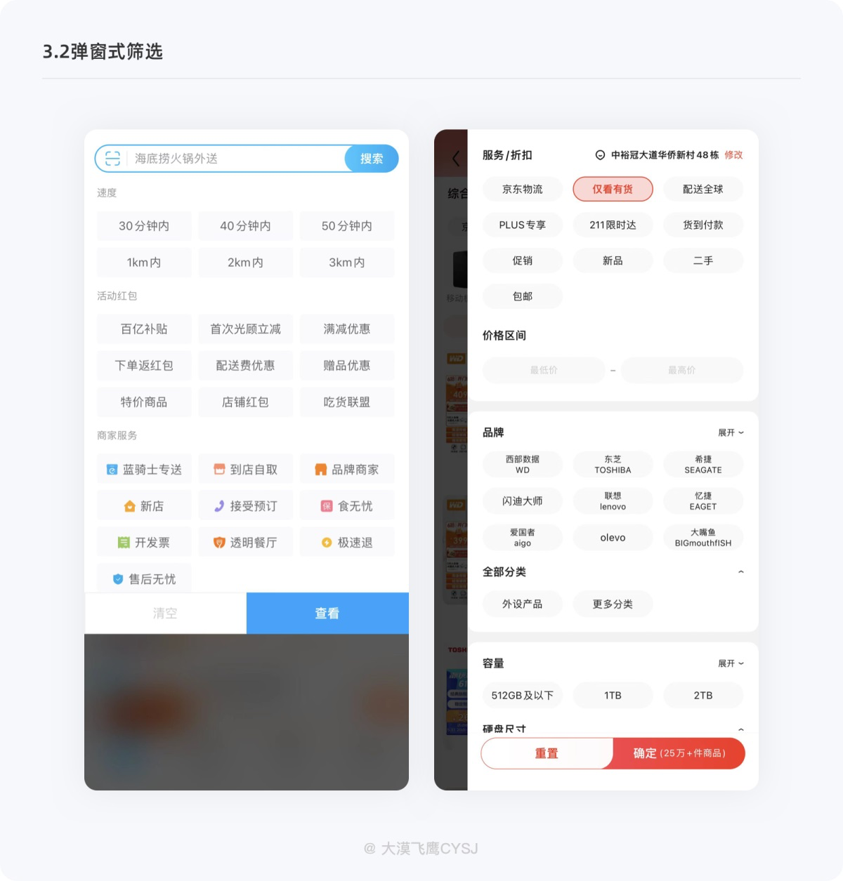 - 場景:電商列表、外賣、出行等高頻精細化篩選
