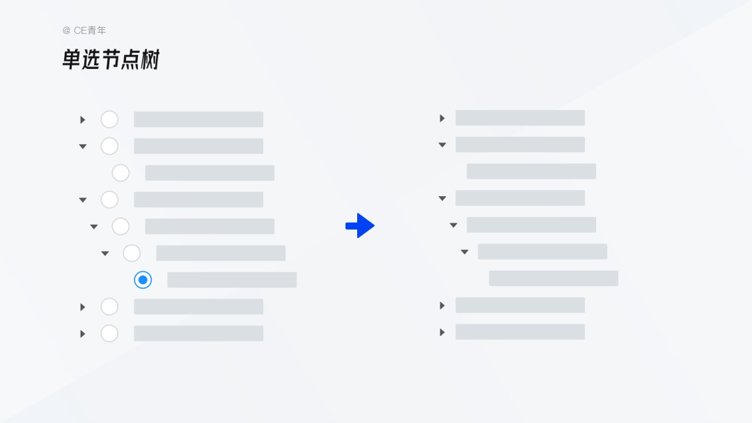 樹形選擇按交互邏輯分為三類,單選節點樹、多選節點樹為主流,傳統單選樹已極少使用。