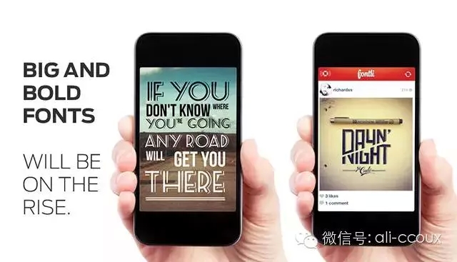 隨著滾動式瀏覽方式的普及,以內容為核心的設計思路,在界面設計上會愈加明顯,沒有過多修飾的排版結構,不再盲目追求將很多內容擠在一屏以內,反之是加大間距和行高,讓用戶的閱讀更加聚焦,享受到沉浸式體驗。大屏手機的流行,也促進了大字體在移動端APP上流行的節奏,大字體會賦予界面以層次,提高特定元素的視覺重量,讓用戶難以忘懷。字體夠大、夠優雅、夠獨特、夠貼合,也就能提升頁面的氣質和特色,而這正是移動端APP設計的另外一次重要的機會。