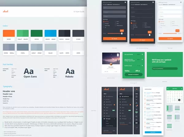 在網頁設計或APP UI設計中,為了更好的規范設計文檔,設計師通常會花時間去把各種UI元素組織起來,比如字體大小、段落行距、按鈕顏色、尺寸等等,制作 Style Guide 雖然會浪費一些時間,但卻有其它方面的好處,比如確保UI設計風格保持一致性,讓開發人員遵循風格指南去開發,節省溝通時間。