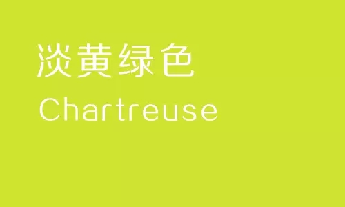 法語Chartreuse意為查特酒,是一種法國和西班牙修道院僧侶釀制的黃綠色甜酒,其色彩呈現出黃色和草綠色,一般用來指稱淺嫩綠色。