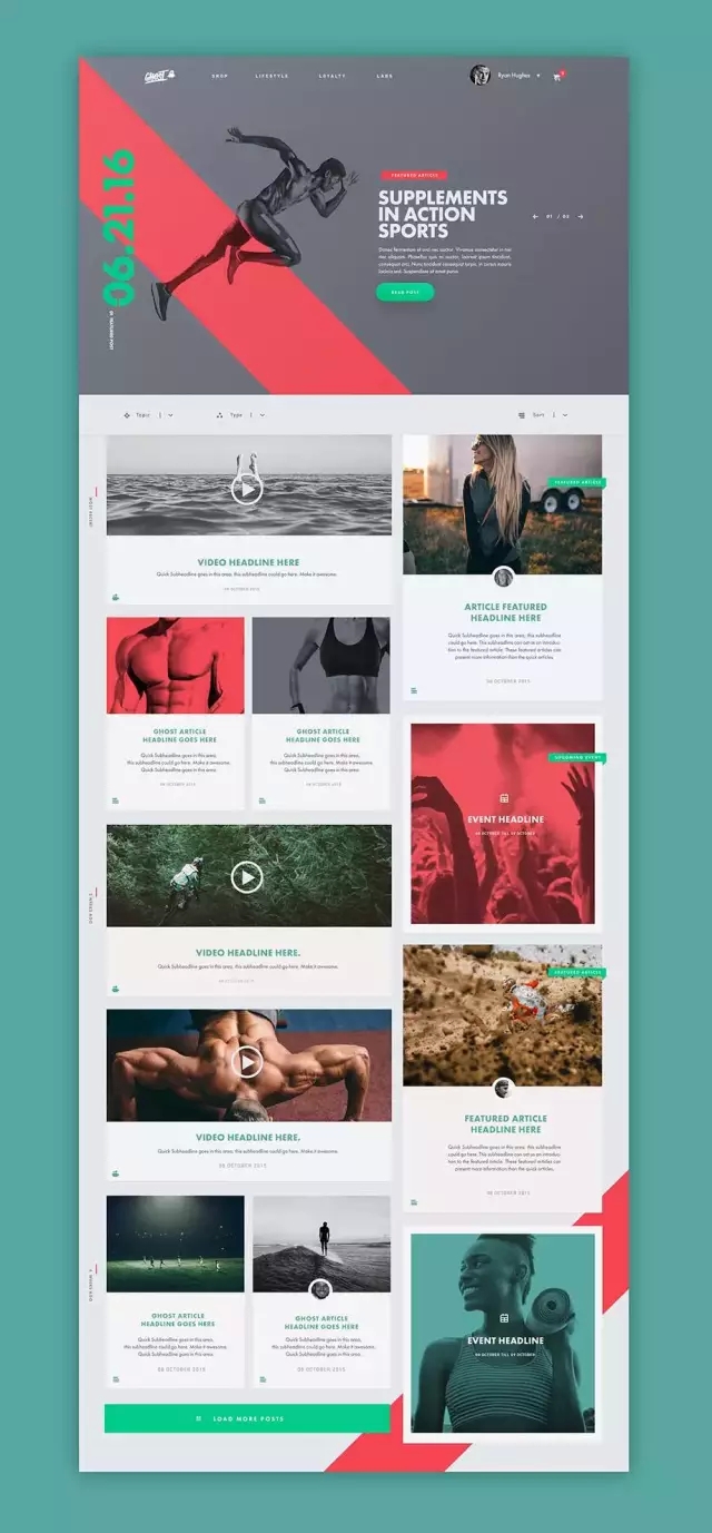 很多人覺得綠色和紅色不能搭配,否則會發生撞色。的確這不是容易搭配好的顏色,但是不代表它們完全不能搭配。在搭配的方式上可以參考上圖,一個作為主色,一個作為點睛色。其中綠色是往藍色靠攏的綠色,避免100%的綠。且紅色的飽和度并不高。這樣就減少了沖突卻保留了兩種色系在視覺上的對比,讓畫面顯得更為活潑。