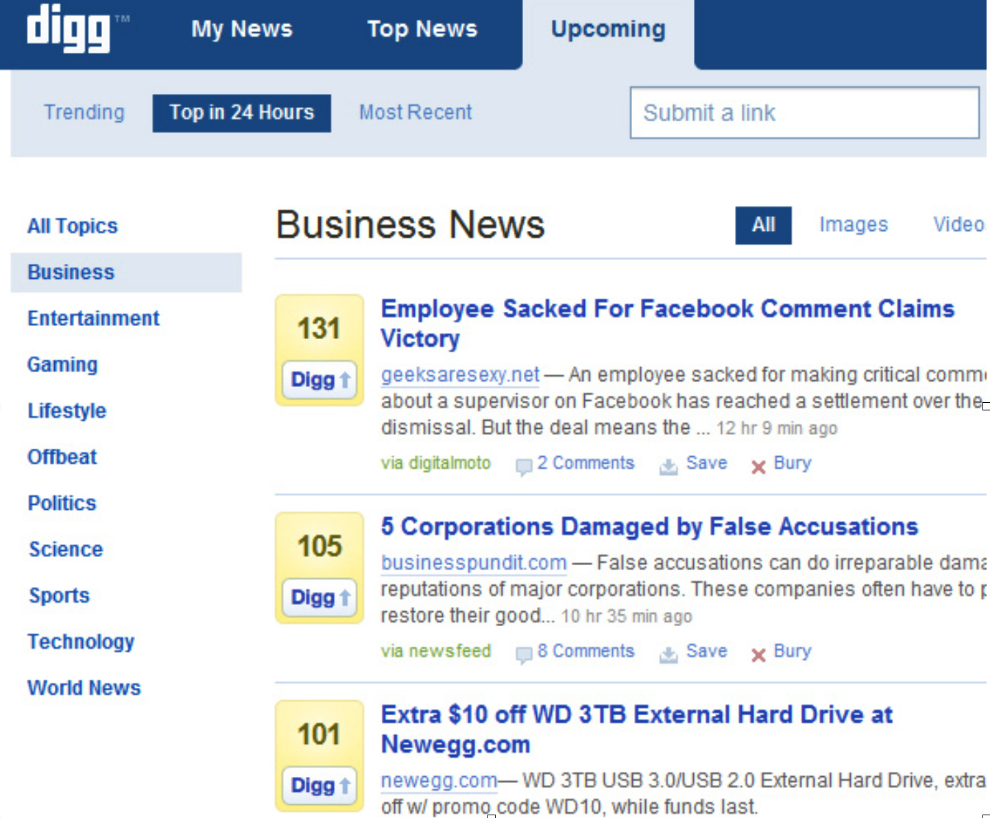 色彩對比如果色塊的任務是區分和調節視覺的美觀,則可以用高純度、低明度的色塊組合,這樣的組合不會很跳躍、刺目,反而容易產生韻律感,使畫面顯得繽紛多姿。digg用危險的對比色來設計網站,但因為明度的降低,反而很鮮明漂亮。